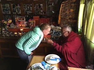 The ceremony ended with each of us presenting the Lama with a kata which he blessed and then tied a string around our necks so that we will have a safe expedition.