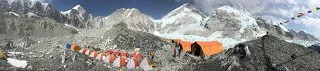 And, taking short hikes around base camp. Yesterday part of the team hiked to the base camp of neighboring Pumori, and enjoyed spectacular views of all of base camp.
