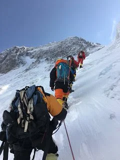 The Madison Mountaineering team is now resting in the luxury of base camp - comfy tents, Internet, and thick air (plus cake) - and making plans to do a "drop back" to a village at a lower elevation while we wait for the route to be fixed to the summit and for a good weather window. Descending to lower elevations for a few days will allow our bodies to recover from the stress of high elevation. Our oxygen saturations and appetites will improve and in general we'll feel like rock stars while we continue to mass produce red blood cells. Then, just before the summit push, we will return to base camp, rested, recovered, and ready for the summit!